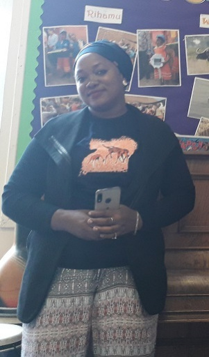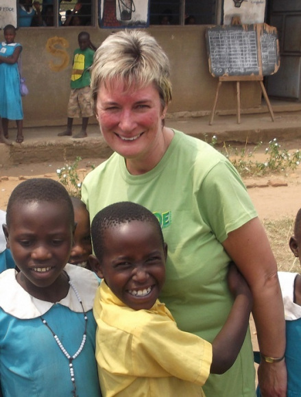 Jan is the Chair of our Trustees. Pictured here with a teacher from Katunguru Primary School